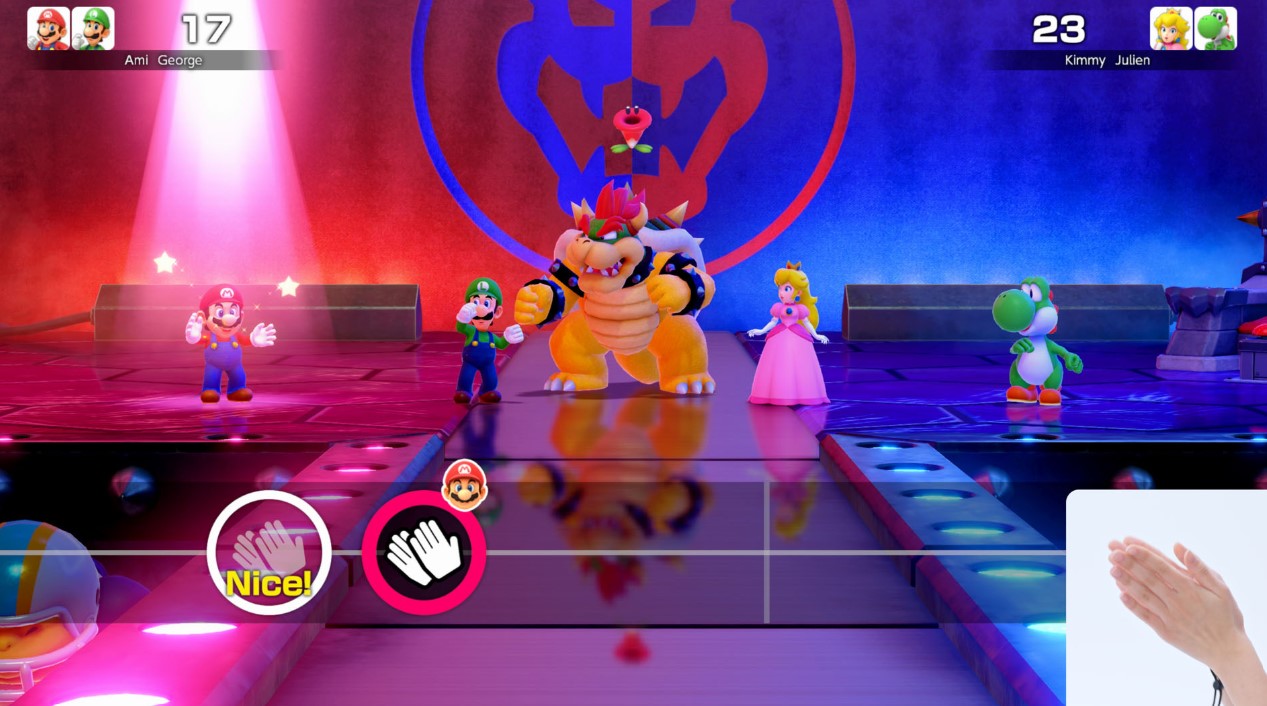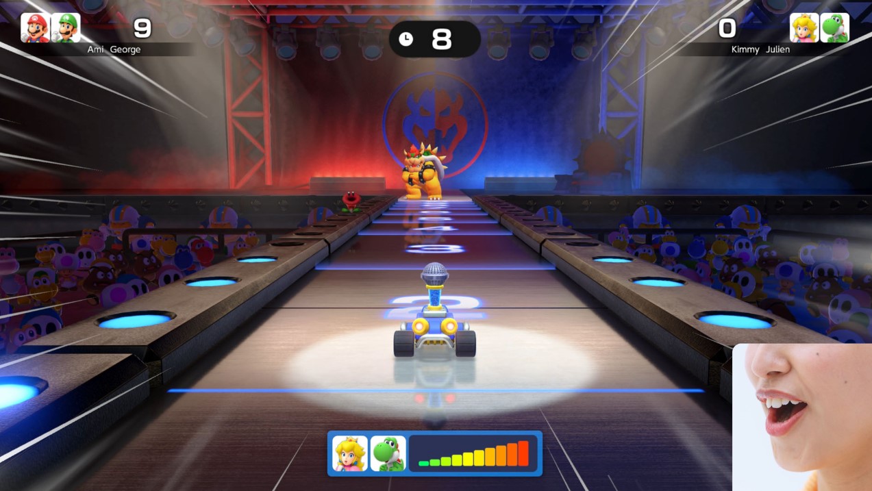 Hier könnt Ihr zwischen zwei verschiedenen Minigame-Arten wählen: Kamera und Mikrofon. Gespielt wird in Zweierteams, die in zwei Minispielen gegeneinander antreten. Nachdem es von jedem Modus, also Kamera und Mikrofon, nur drei Minispiele gibt, ist die Auswahl äußerst beschränkt. Als drittes Spiel gibt es noch eine Herausforderung durch Bowser. Hier geht es darum, richtig viel Lärm zu produzieren und, sofern Ihr auch die Kamera aktiviert habt, dabei wild herumzufuchteln und für jede Menge Bewegung zu sorgen.