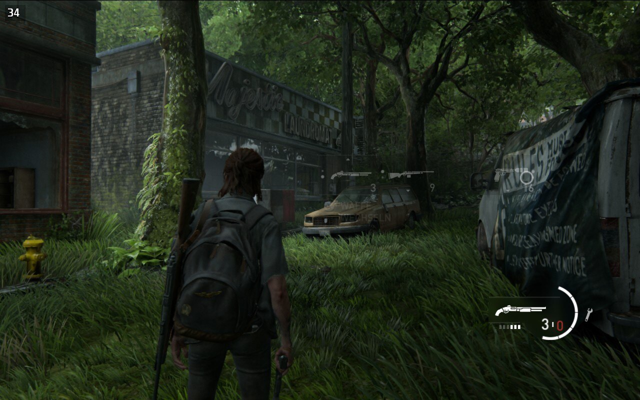 Zur Verteidigung und im Angriff stehen Ellie und Abby eine breite Palette an Waffen und Hilfsmitteln zur Verfügung – darunter Pistolen, Gewehre, Bögen, Armbrüste und sogar ein Flammenwerfer. Diese Waffen lassen sich an Werkbänken verbessern, wofür wir Schrott sammeln müssen. Auch die Fähigkeiten der beiden Protagonistinnen lassen sich erweitern. In der Spielwelt finden wir Trainingsbücher, die Talentbäume eröffnen, dessen Upgrades mit gesammelten Pillen freigeschaltet werden können.