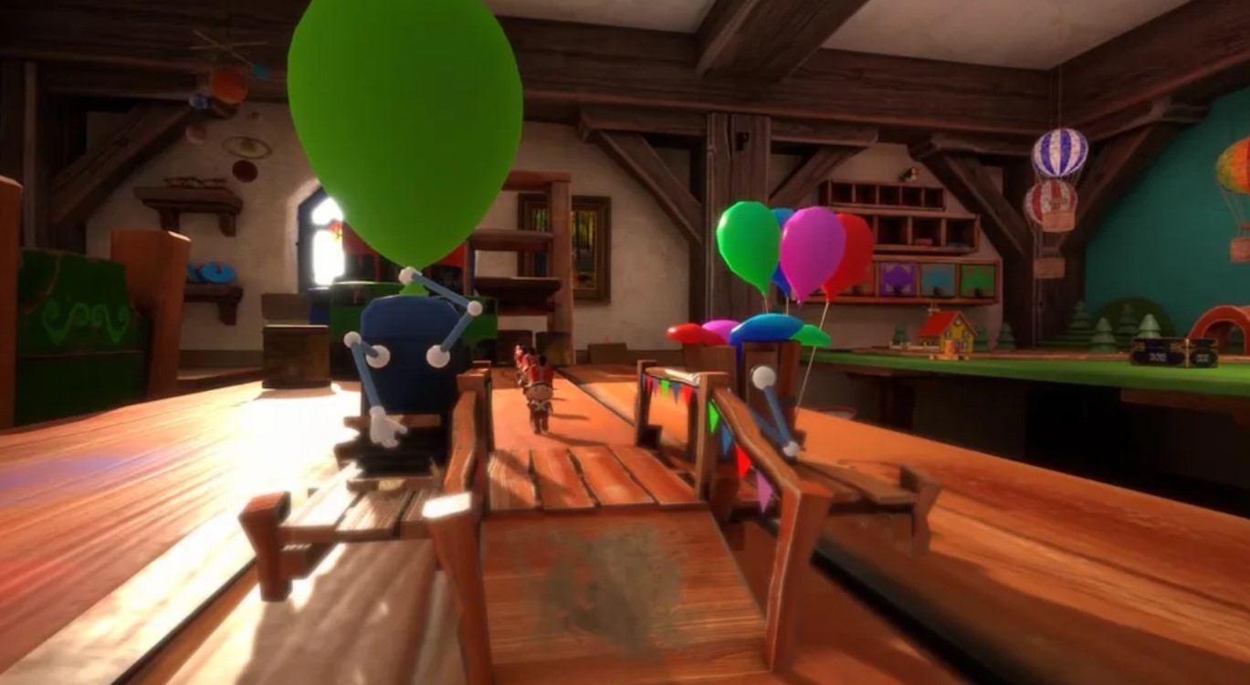 Der Graphikstil lässt sich mit „Cartoon-realistisch“ ganz gut umschreiben. Die immer detailreicher werdende Umgebung führt Euch durch die Räume des Spielzeugmachers.