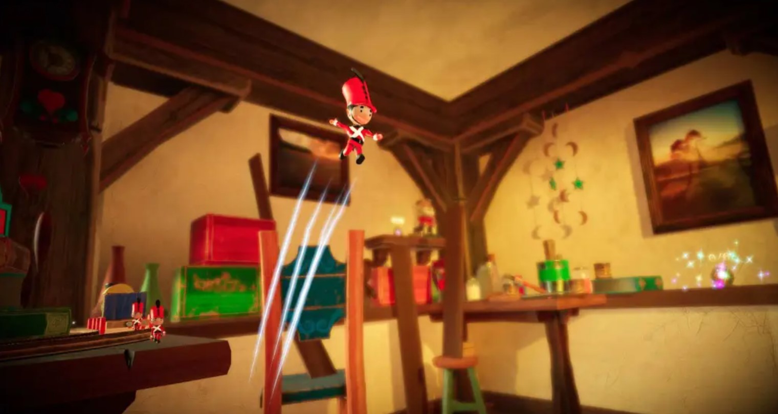 Das Spiel nimmt uns dabei in Alberts Gefühlswelt mit und diese spiegelt sich im Leveldesign. Bedrohlich, dunkel und rot präsentieren sich die Level, wenn Albert wütend ist. Ist Albert traurig, laufen die Zinnsoldaten nur noch schleppend ihren vorbestimmten Pfad. Alberts ganze Leidenschaft sind seine Spielzeuge, deren Produktion und die stetige Weiterentwicklung ihn und seine Familie fast in den Untergang treibt.